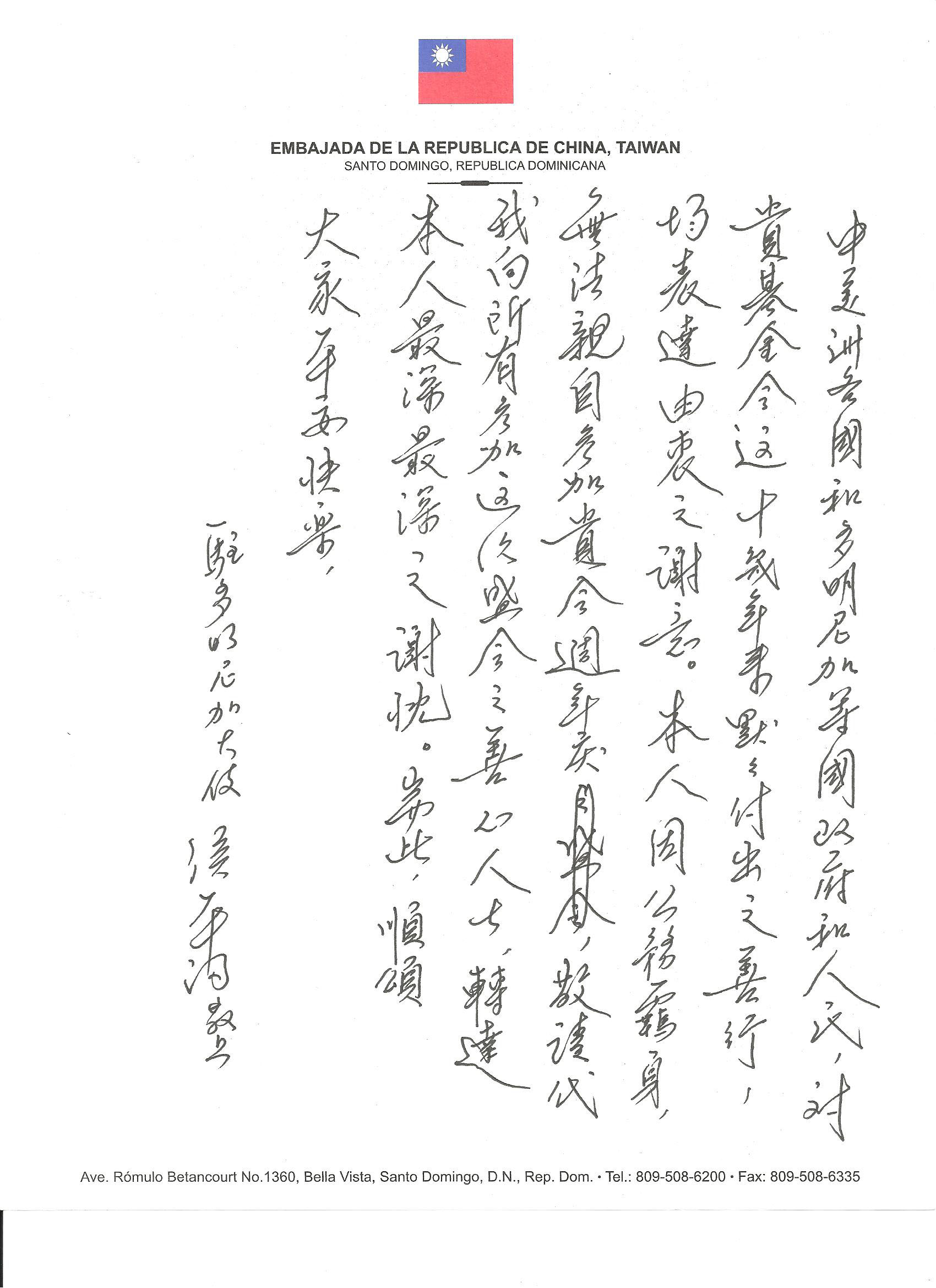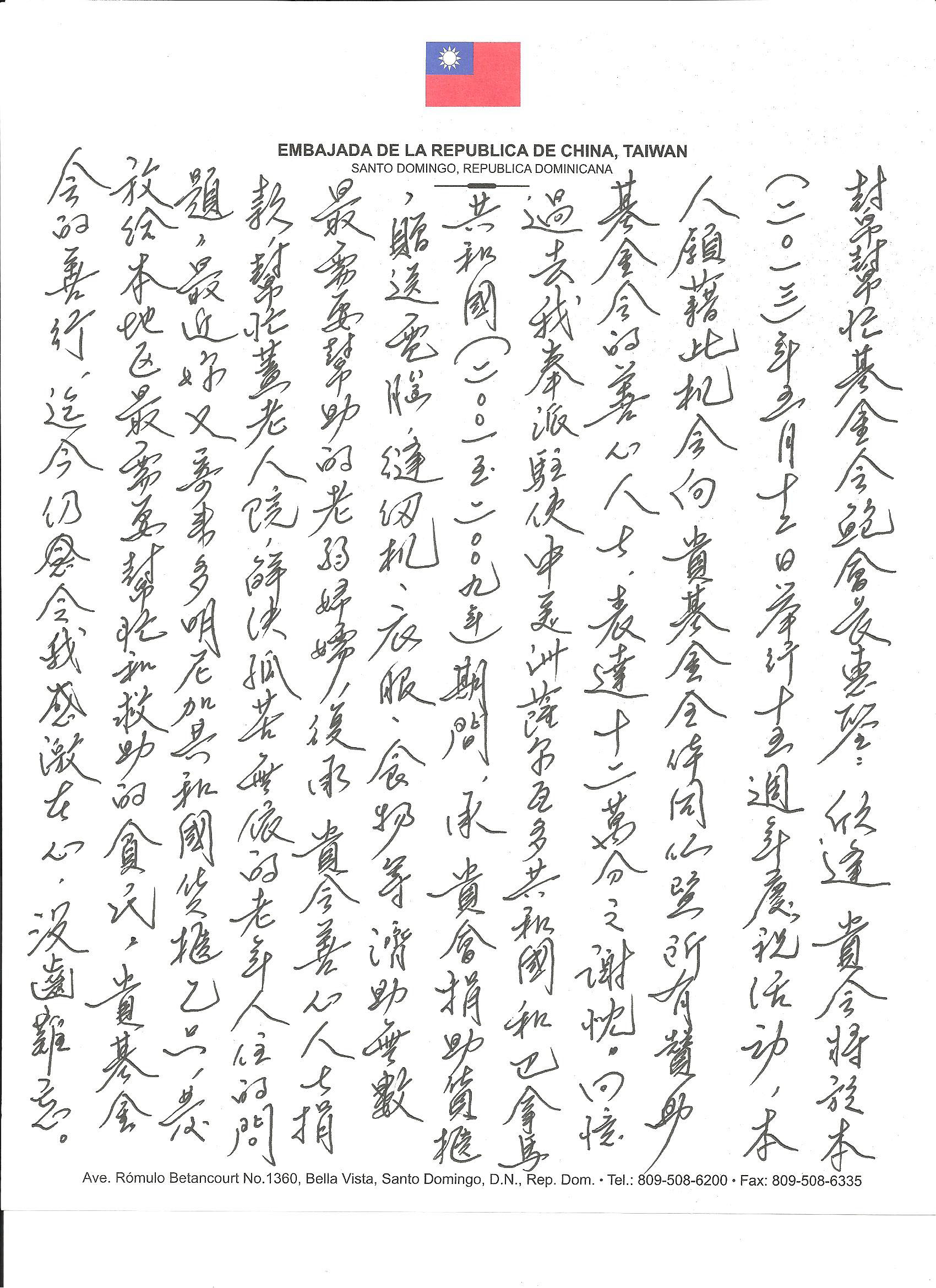 Recognition: Dominican Republic << 感謝信 Recognition: Dominican Republic(多美尼加共和國:) 報紙報導 2013-05-28 大使致函