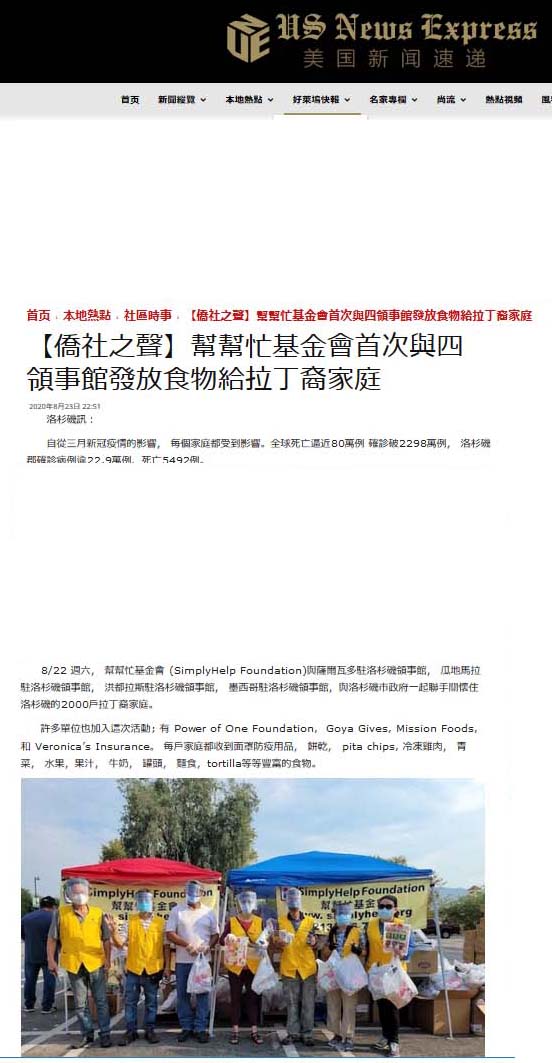 2020 8/24 僑社之聲- 幫幫忙基金會首次與四領事館發放食物給拉丁裔家庭