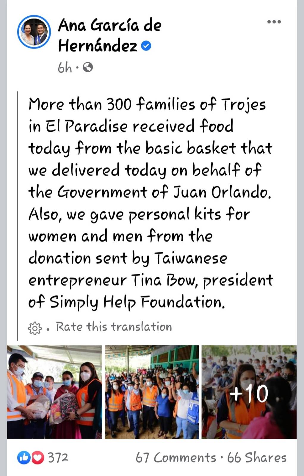2021 1/27 Honduras Disaster ReliefBy sw / January 28, 2021 SimplyHelp Foundation disaster relief container for Honduras! 感謝洪都拉斯第一夫人把愛心物資發放給風災區。 幫幫忙基金會得知宏都拉斯因風災造成嚴重災害,立刻募集物資送至宏國,包括食物、衣服、鞋子、毯子、防疫物資,另還有小孩的玩具及文具用品等。此貨櫃捐贈給宏國緊急應變委員會(COPECO),幫助更多家庭度過此次災害。