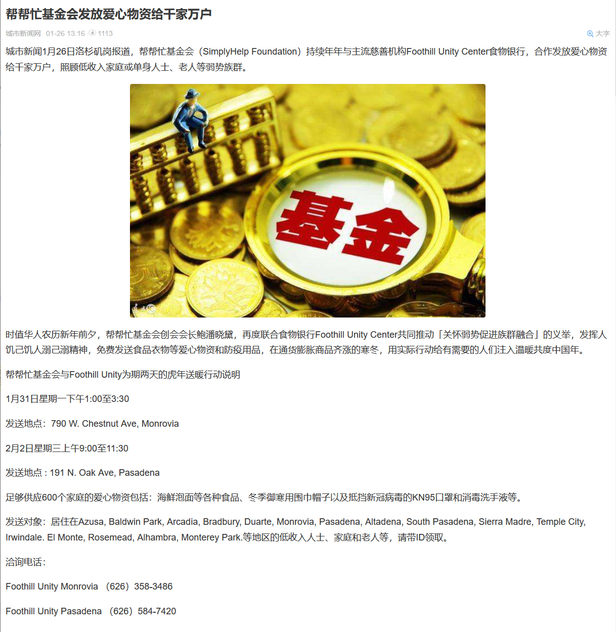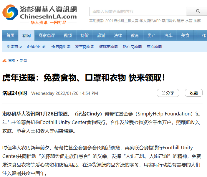 2022 2/15- 東森美洲電視-幫幫忙基金會新春送暖 發放防疫物資助華人/用愛心回饋華人社區 沒有收入+身份限制
