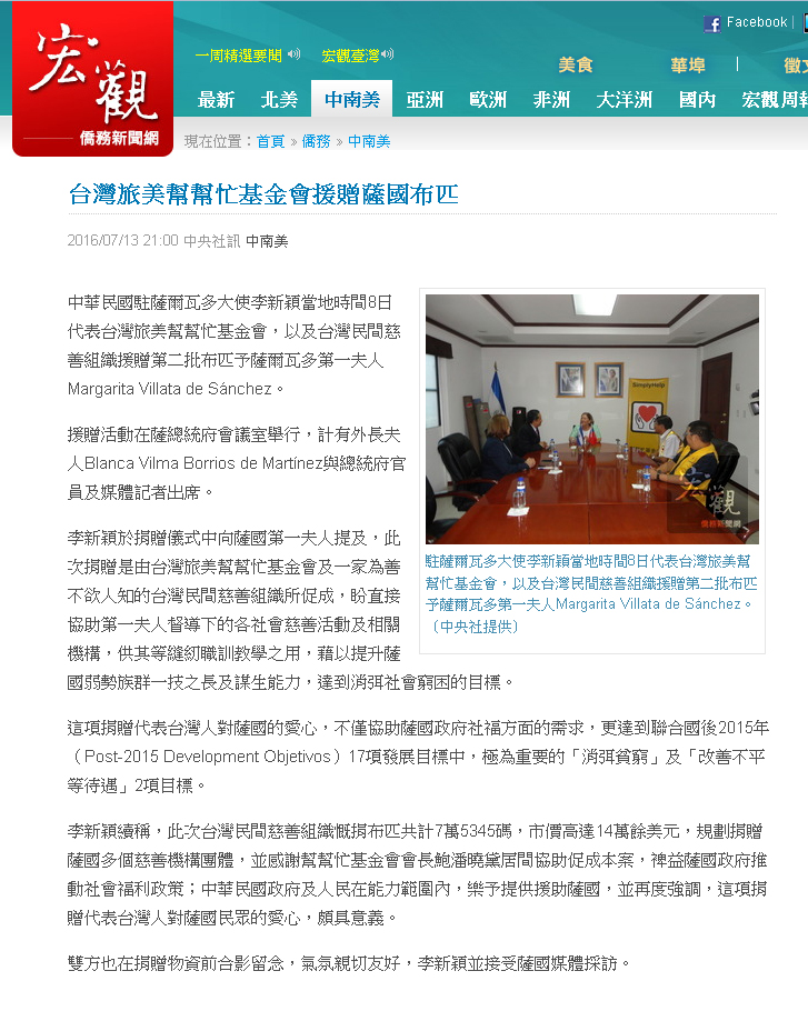 2016 7/13 台灣旅美幫幫忙基金會援贈薩國布匹(宏觀僑務新聞網)