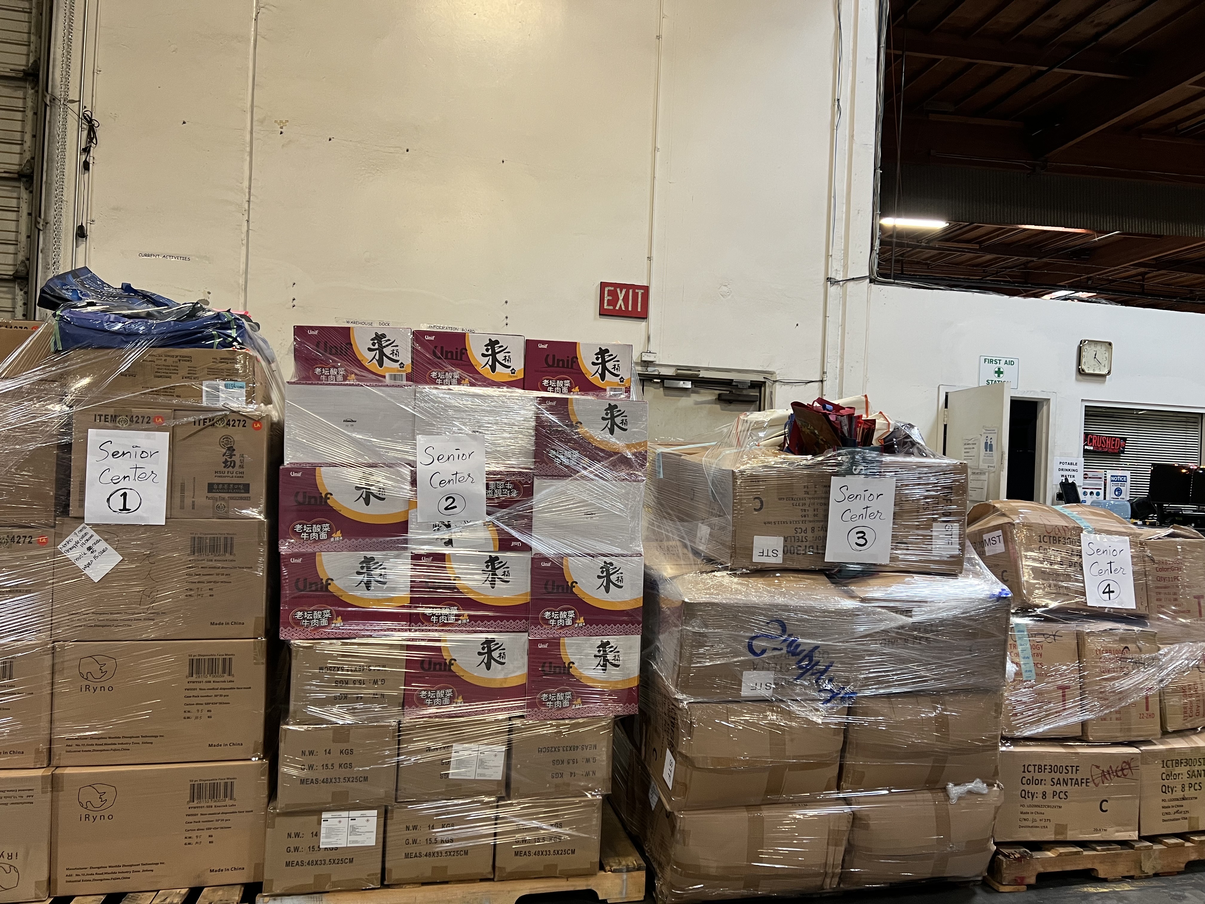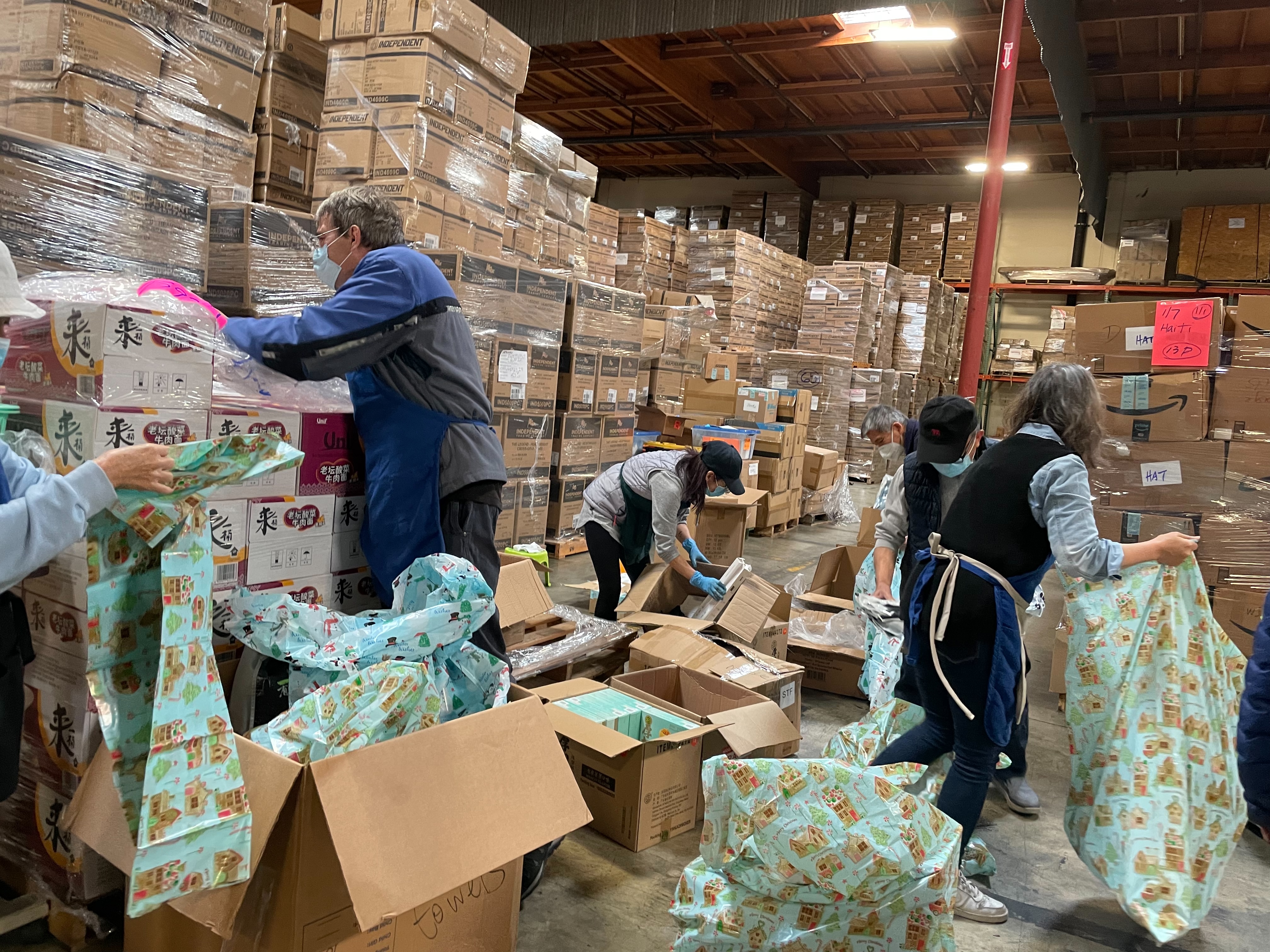 Here are the 4 pallets of gifts for Chinatown Senior center.