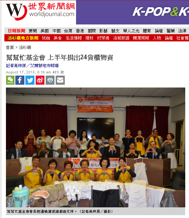2016 08/17中天北美新聞-1 幫幫忙上半年度報告 24個貨櫃幫助19