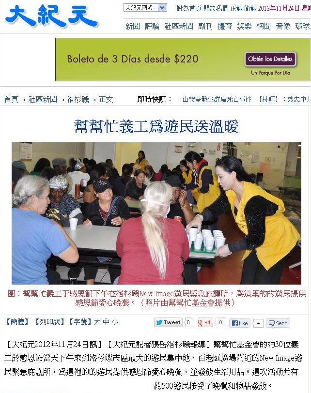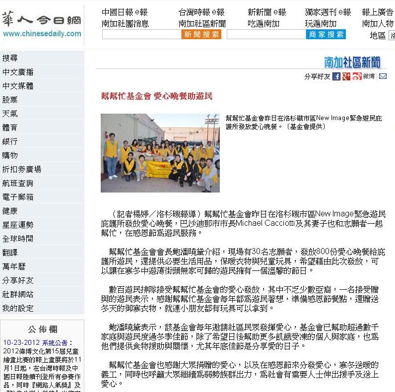 2012-11-23 Article at Chinesedaily 幫幫忙基金會 愛心晚餐助遊民
