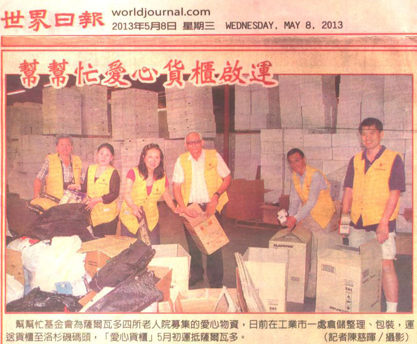 2013-04-21 Article at 世界日報-幫幫忙愛心貨櫃啟運